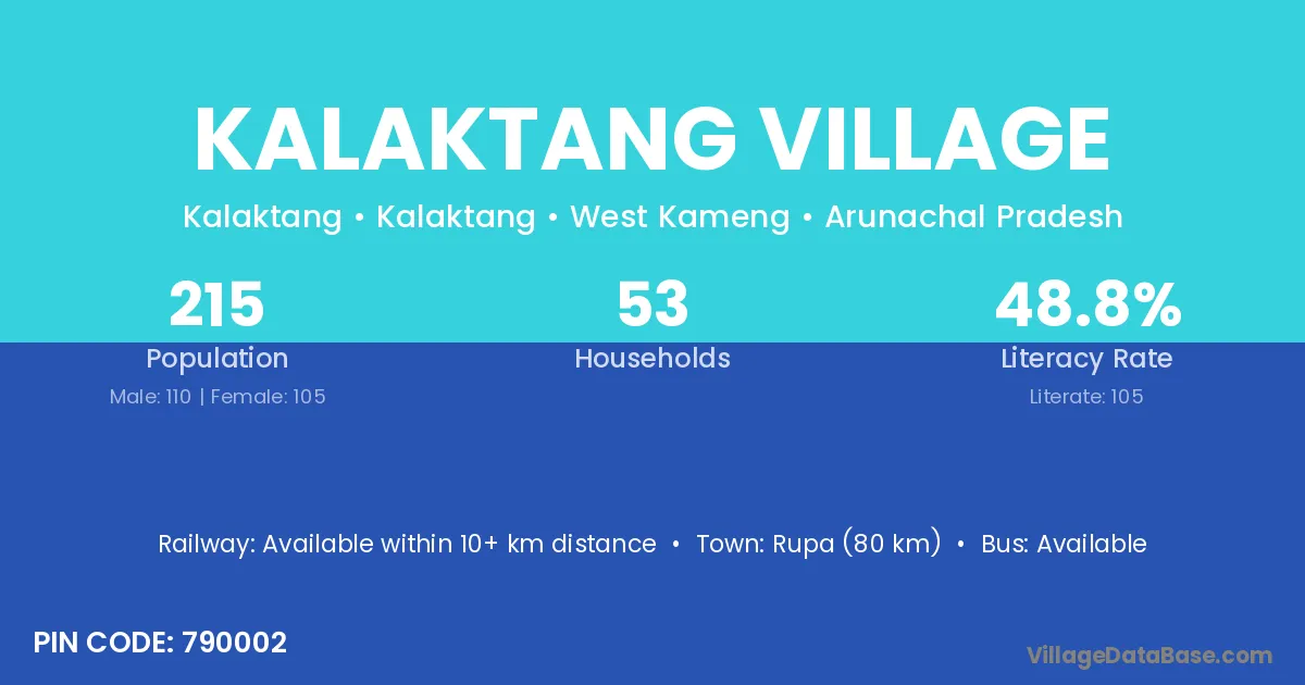 Kalaktang Village village has a total population of 215 people, of which 110 are males and 105 are females.