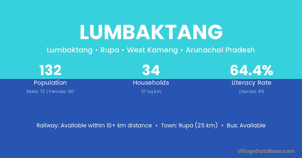 Lumbaktang village has a total population of 132 people, of which 72 are males and 60 are females.