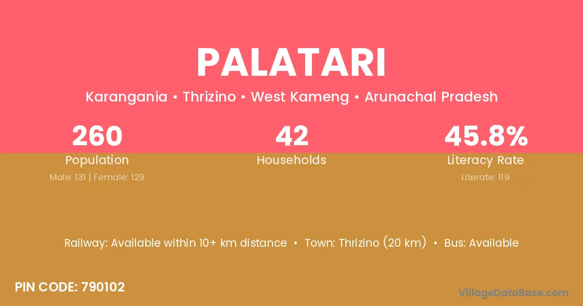 Palatari village has a total population of 260 people, of which 131 are males and 129 are females.