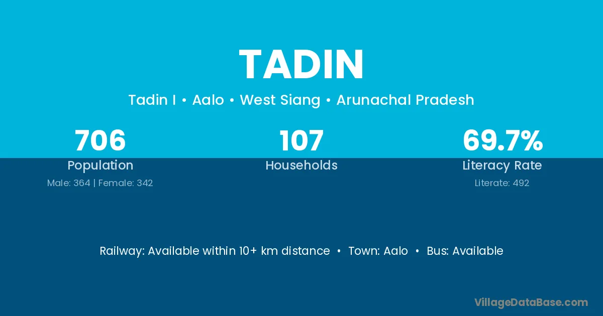 Tadin village has a total population of 706 people, of which 364 are males and 342 are females.