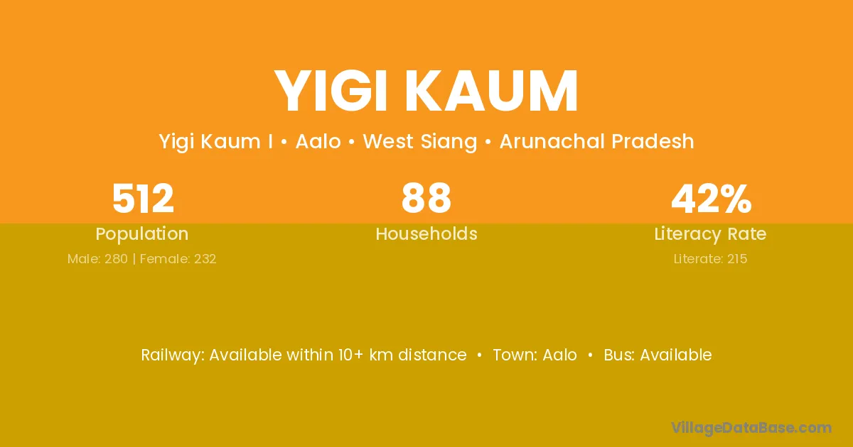 Yigi Kaum village has a total population of 512 people, of which 280 are males and 232 are females.