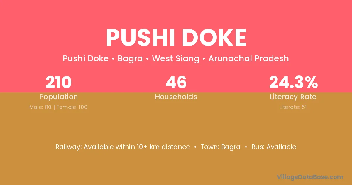 Pushi Doke village has a total population of 210 people, of which 110 are males and 100 are females.