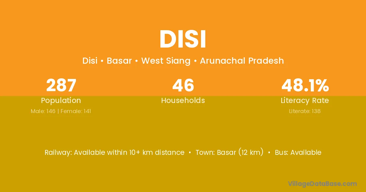 Disi village has a total population of 287 people, of which 146 are males and 141 are females.