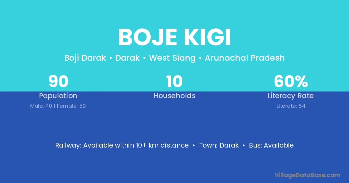 Boje Kigi village has a total population of 90 people, of which 40 are males and 50 are females.