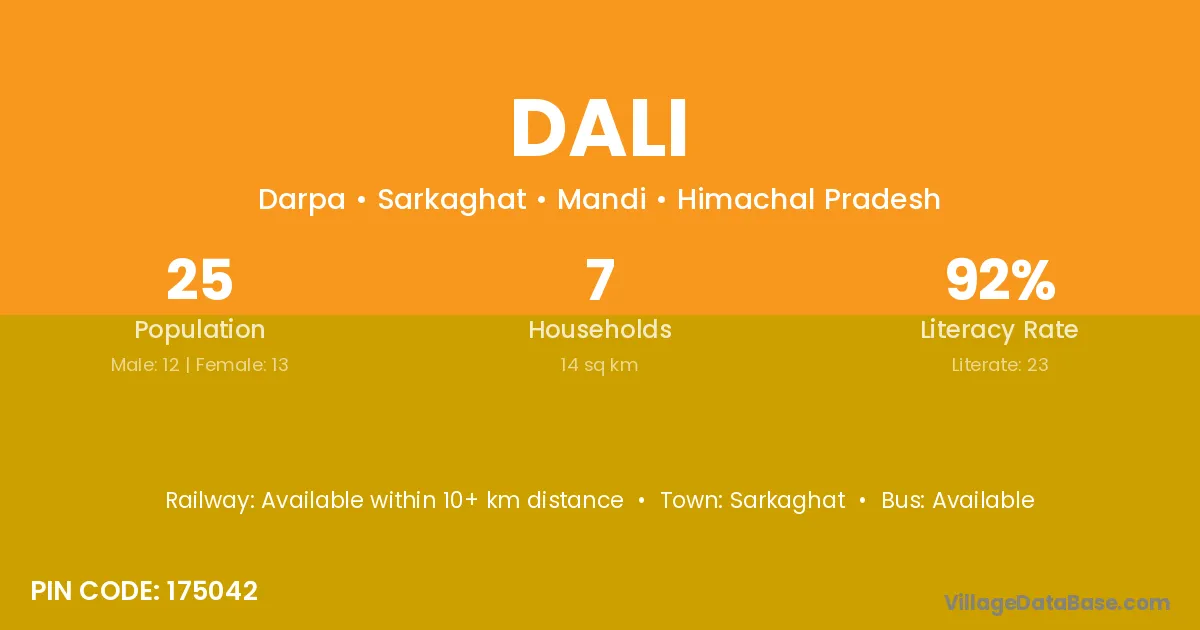 The literacy rate of Dali village is 55.63%. Male literacy stands at 63.33% and female literacy at 50.00%.