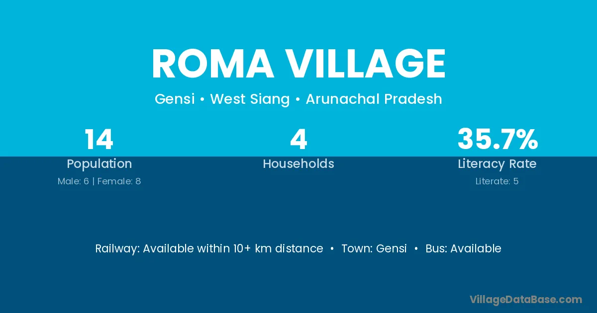 The literacy rate of Roma Village village is 35.71%. Male literacy stands at 33.33% and female literacy at 37.50%.
