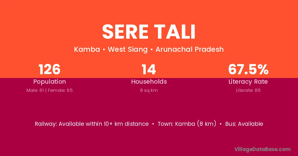 Sere Tali village has a total population of 126 people, of which 61 are males and 65 are females.