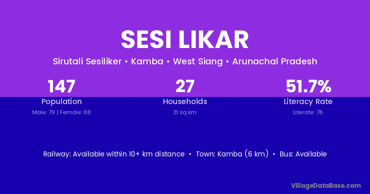 Sesi Likar village has a total population of 147 people, of which 79 are males and 68 are females.