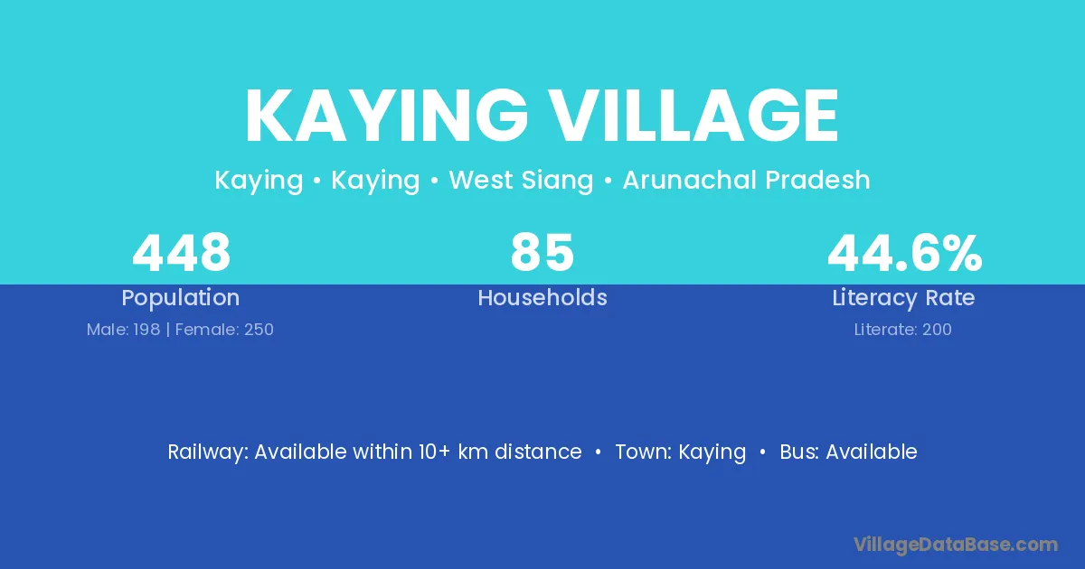 Kaying Village village has a total population of 448 people, of which 198 are males and 250 are females.