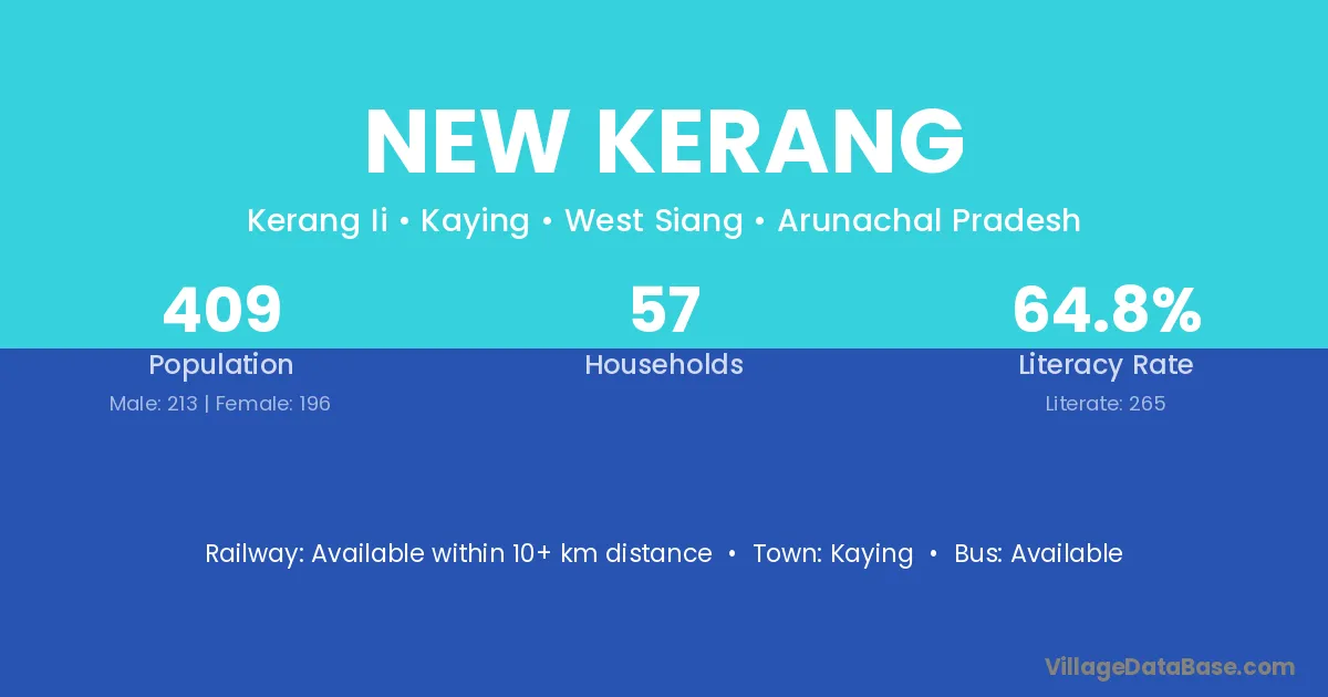 New Kerang village has a total population of 409 people, of which 213 are males and 196 are females.