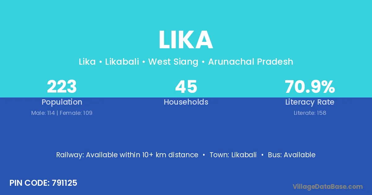 Lika village has a total population of 223 people, of which 114 are males and 109 are females.