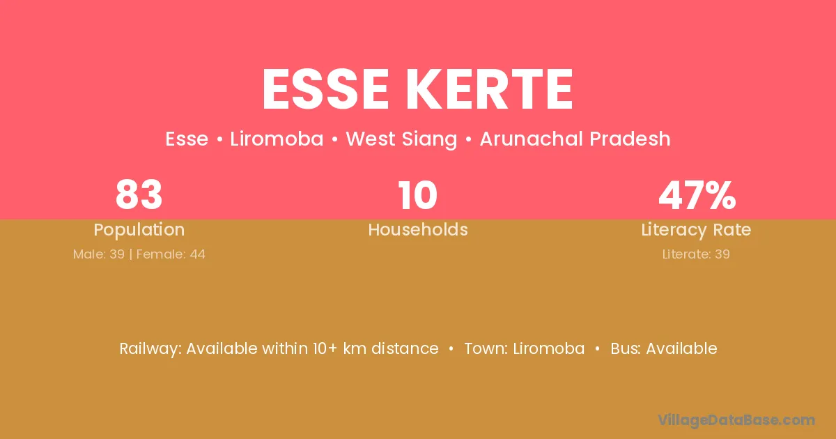 Esse Kerte village has a total population of 83 people, of which 39 are males and 44 are females.
