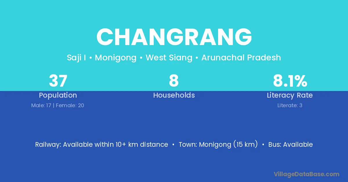 Changrang village has a total population of 37 people, of which 17 are males and 20 are females.