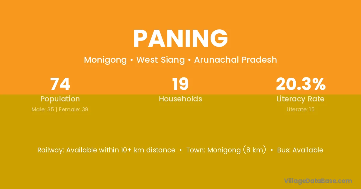 Paning village has a total population of 74 people, of which 35 are males and 39 are females.