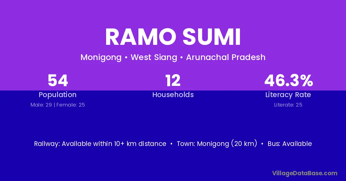 Ramo Sumi village has a total population of 54 people, of which 29 are males and 25 are females.
