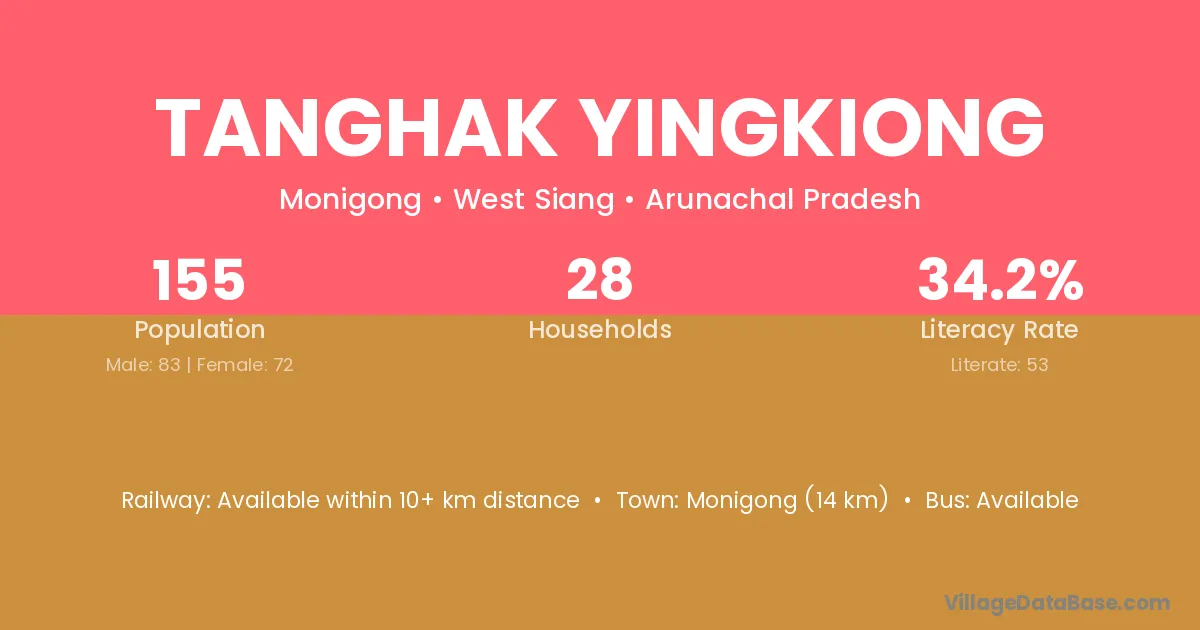 Tanghak Yingkiong village has a total population of 155 people, of which 83 are males and 72 are females.