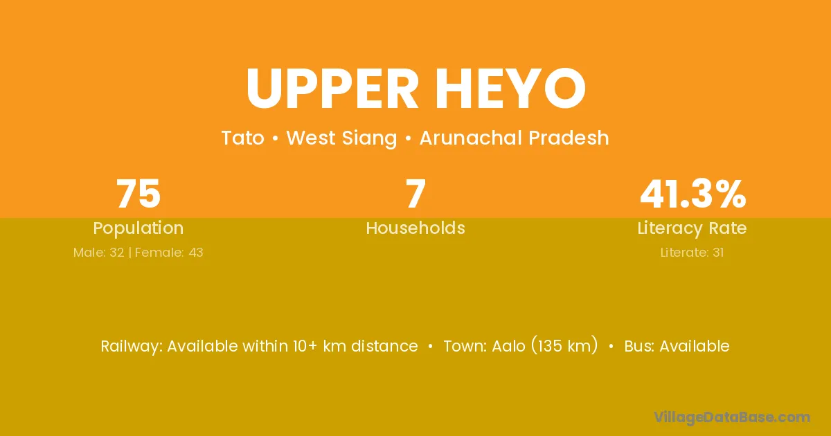 Upper Heyo village has a total population of 75 people, of which 32 are males and 43 are females.