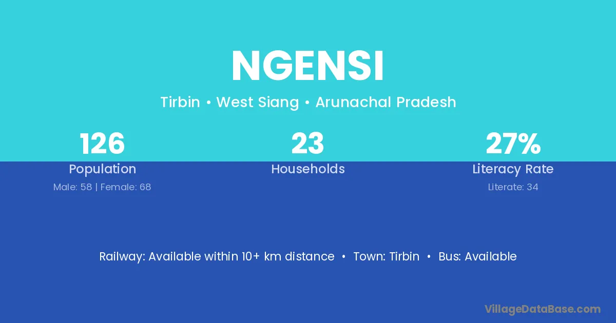 The literacy rate of Ngensi village is 26.98%. Male literacy stands at 27.59% and female literacy at 26.47%.
