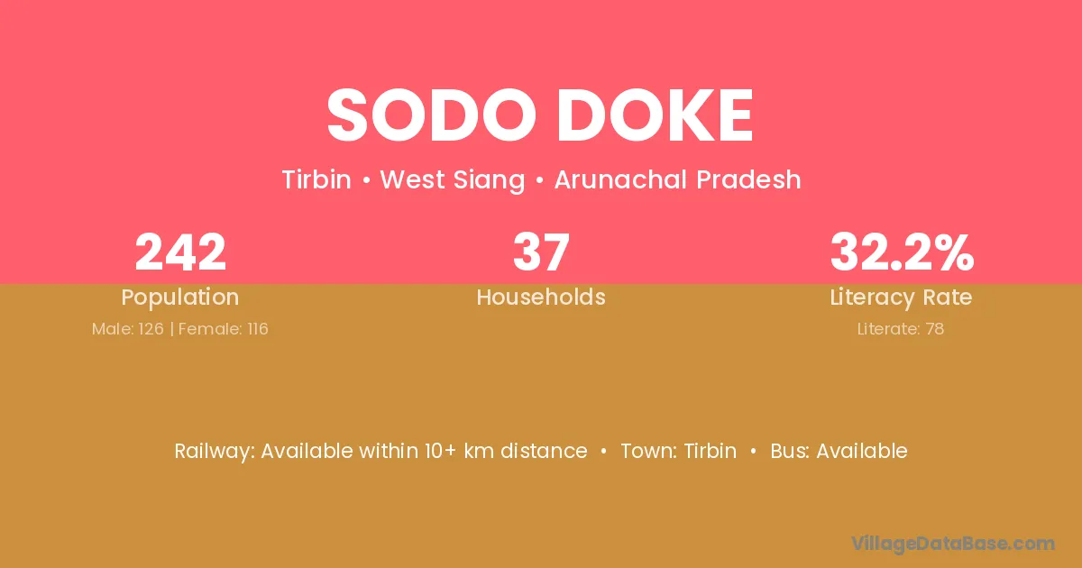 Sodo Doke village has a total population of 242 people, of which 126 are males and 116 are females.