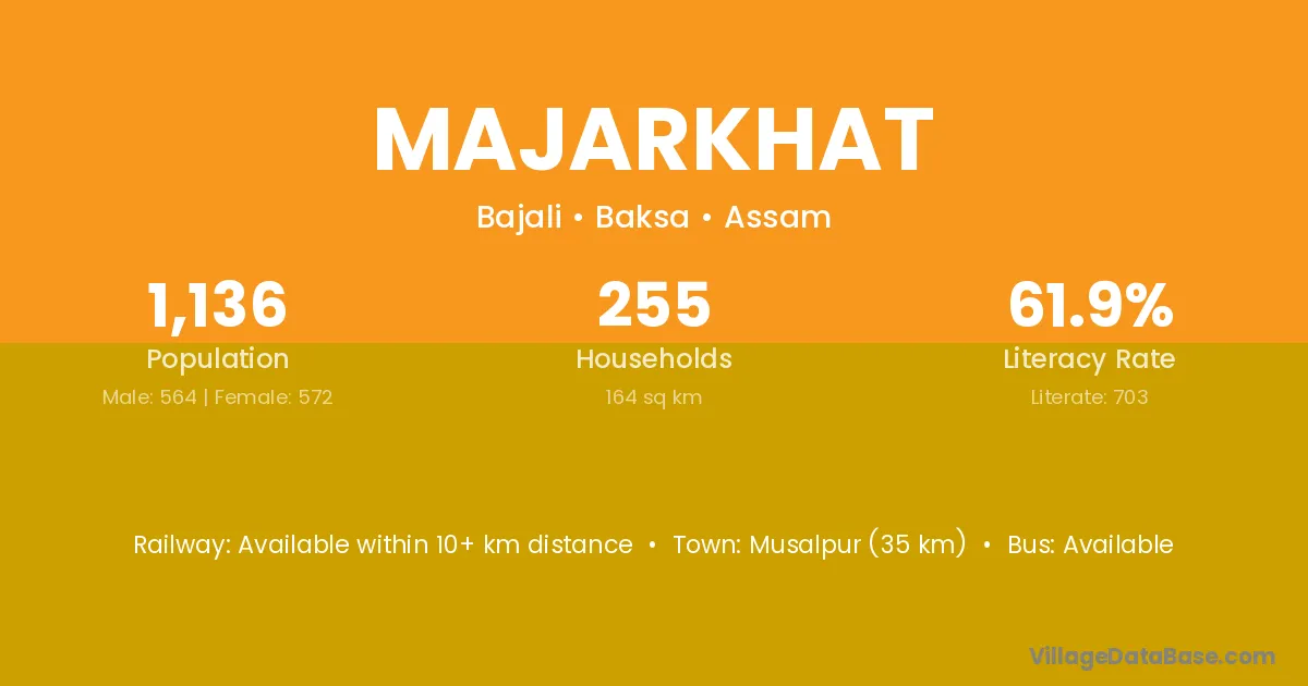 Majarkhat village has a total population of 1,136 people, of which 564 are males and 572 are females.