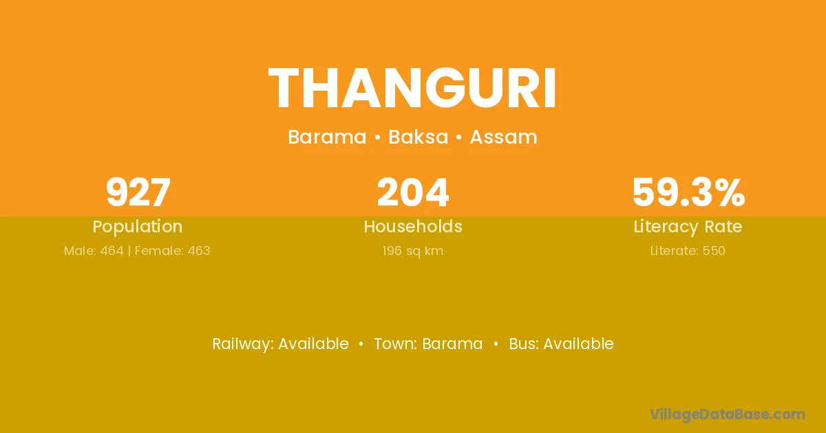 Thanguri village has a total population of 927 people, of which 464 are males and 463 are females.