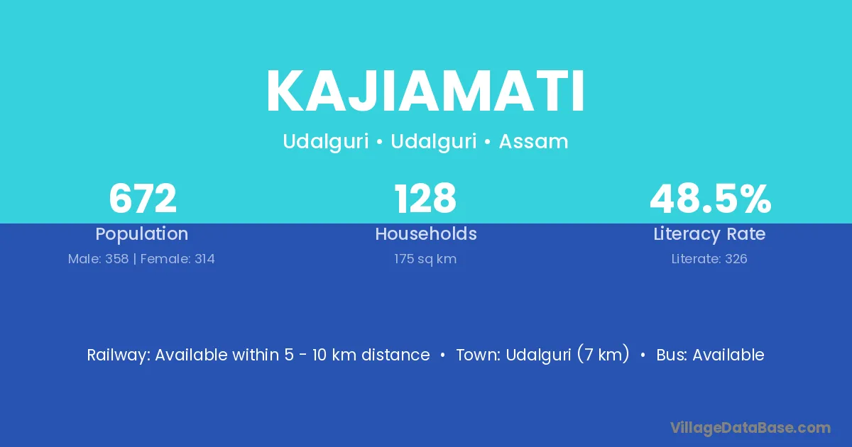 Barpeta Road (15 km) is the nearest town to Kajiamati village for major economic activities and is located approximately 15 km away.