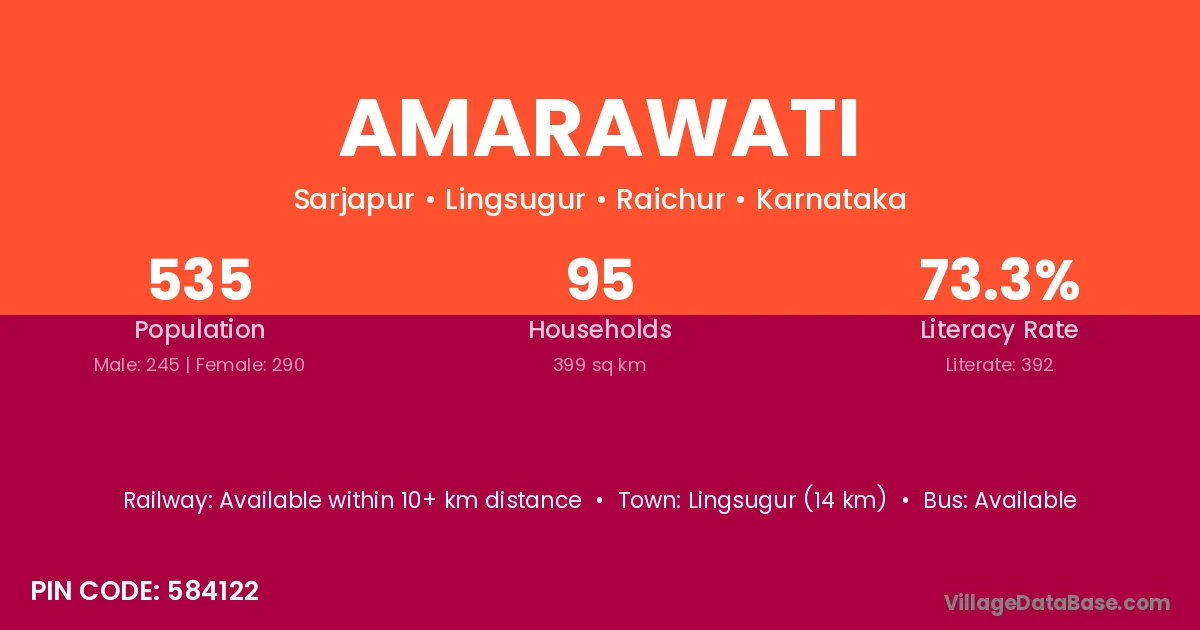 The literacy rate of Amarawati village is 70.53%. Male literacy stands at 77.79% and female literacy at 62.80%.