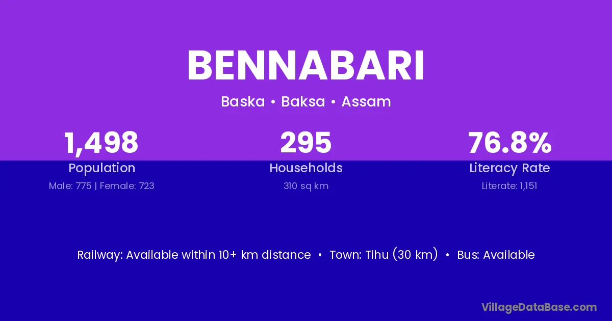Bennabari village is located in the Baska Subdivision of the Baksa district in Assam .