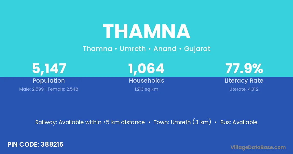 There are approximately 398 households in Thamna village.