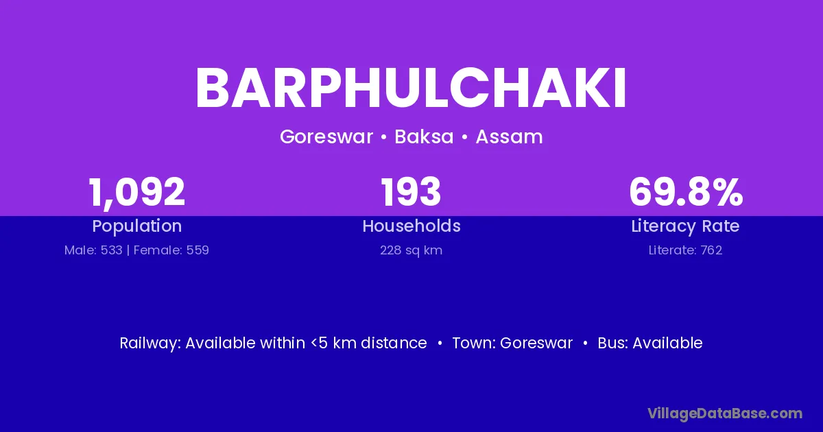 Barphulchaki village has a total population of 1,092 people, of which 533 are males and 559 are females.