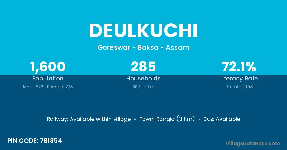 Rangia (3 km) is the nearest town to Deulkuchi village for major economic activities and is located approximately 3 km away.