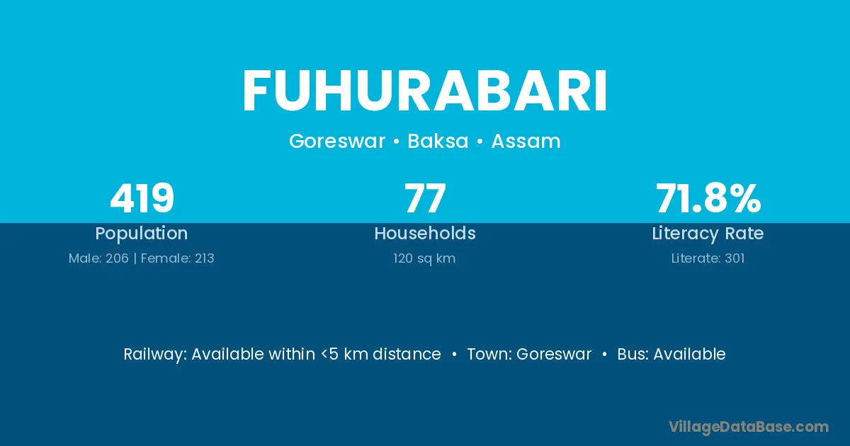Fuhurabari village has a total population of 419 people, of which 206 are males and 213 are females.