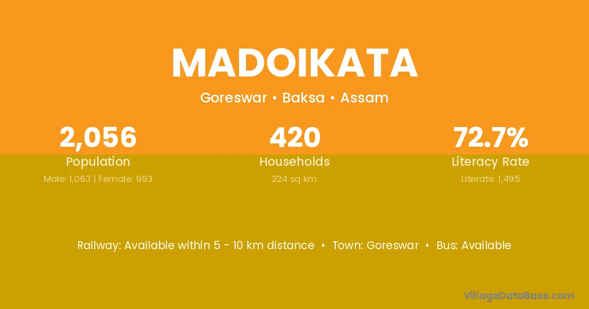 Goreswar is the nearest town to Madoikata village for major economic activities