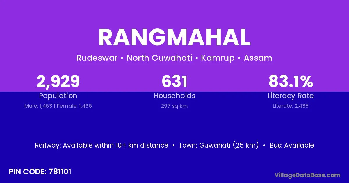 The literacy rate of Rangmahal village is 72.96%. Male literacy stands at 79.22% and female literacy at 67.36%.
