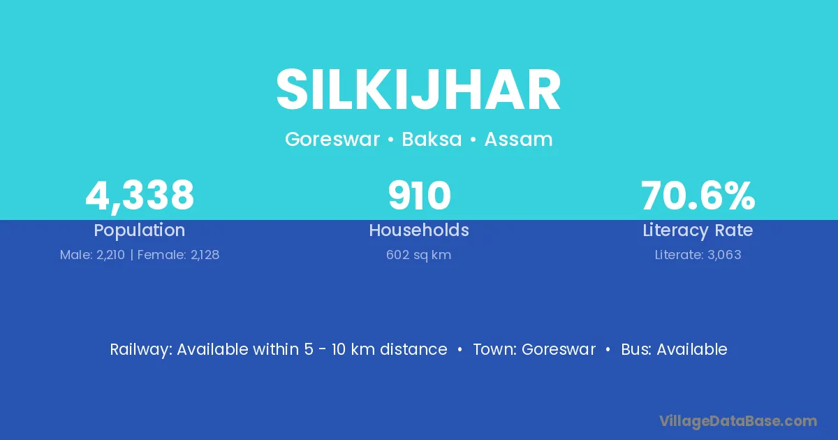 Goreswar is the nearest town to Silkijhar village for major economic activities