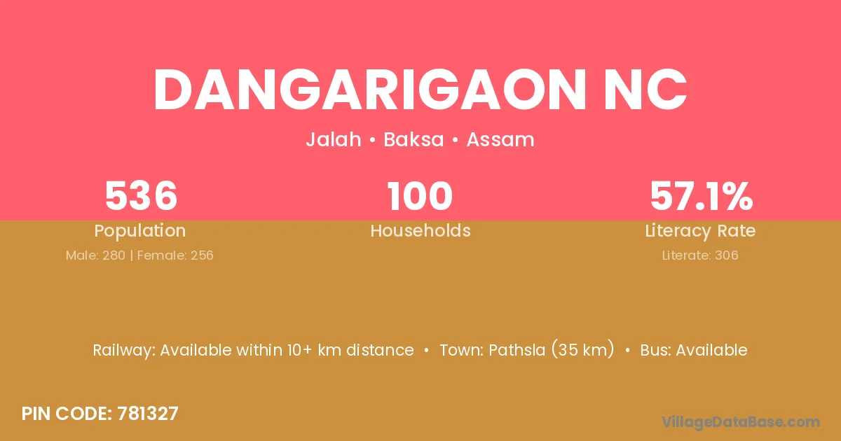 Dangarigaon Nc village has a total population of 536 people, of which 280 are males and 256 are females.