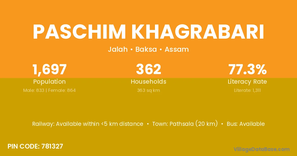 Pathsala (20 km) is the nearest town to Paschim Khagrabari village for major economic activities and is located approximately 20 km away.