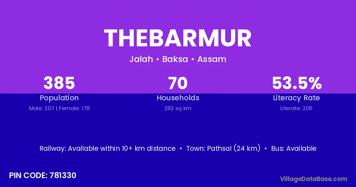 Pathsal (24 km) is the nearest town to Thebarmur village for major economic activities and is located approximately 24 km away.