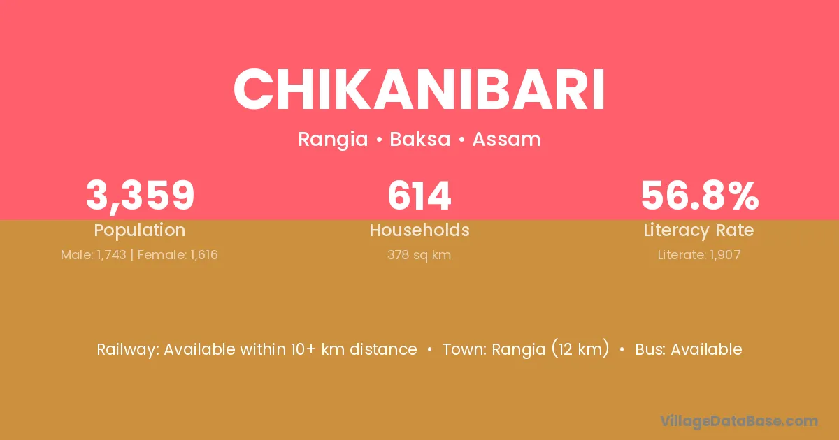 Rangia (12 km) is the nearest town to Chikanibari village for major economic activities and is located approximately 12 km away.