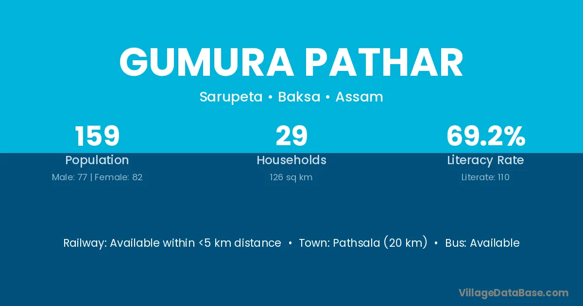 Pathsala (20 km) is the nearest town to Gumura Pathar village for major economic activities and is located approximately 20 km away.