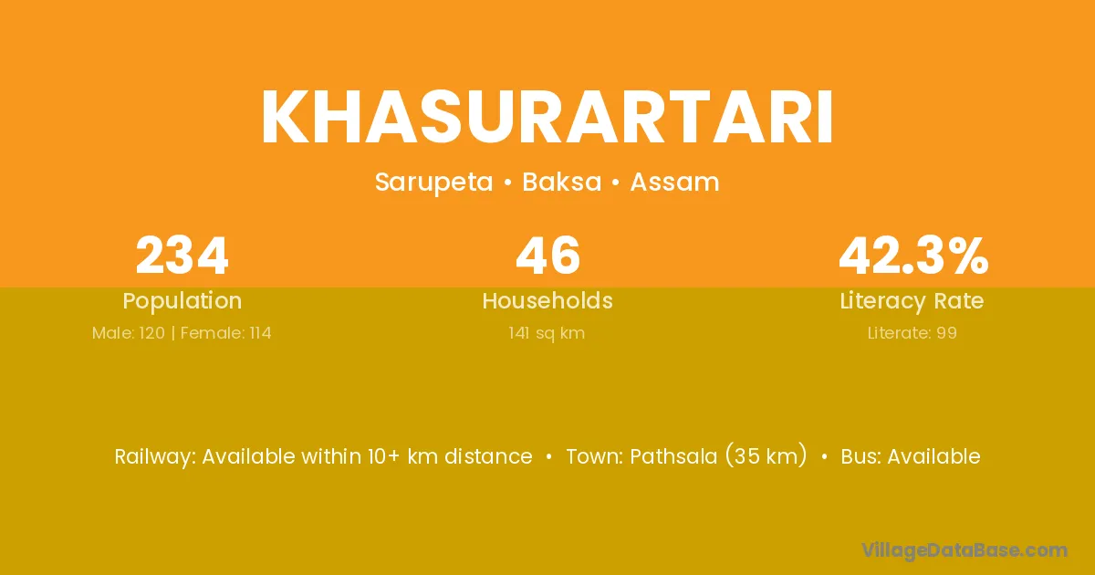 Pathsala (35 km) is the nearest town to Khasurartari village for major economic activities and is located approximately 35 km away.