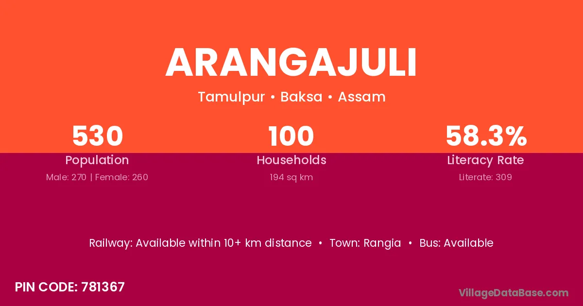 Rangia is the nearest town to Arangajuli village for major economic activities