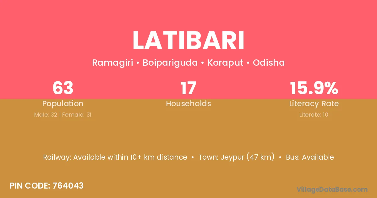 The literacy rate of Latibari village is 57.36%. Male literacy stands at 67.53% and female literacy at 45.72%.