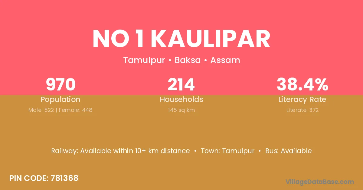No 1 Kaulipar village has a total population of 970 people, of which 522 are males and 448 are females.
