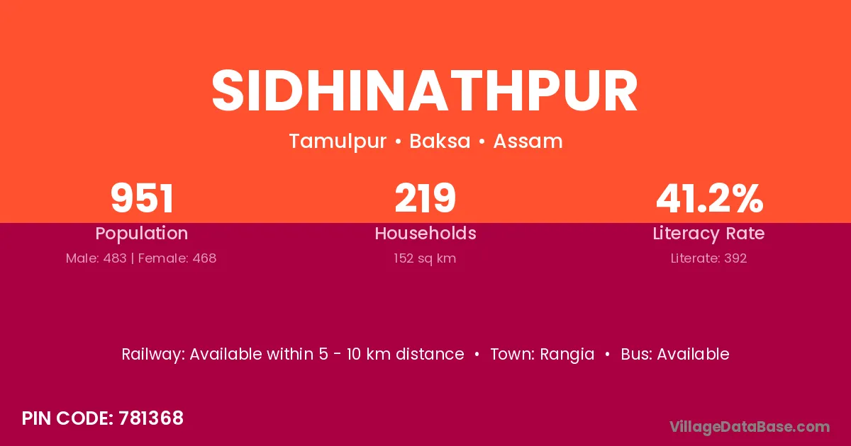 Sidhinathpur village has a total population of 951 people, of which 483 are males and 468 are females.