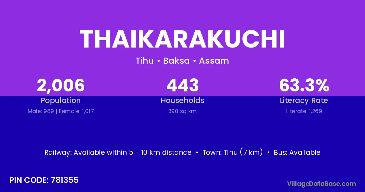 Thaikarakuchi village is located in the Tihu Subdivision of the Baksa district in Assam .
