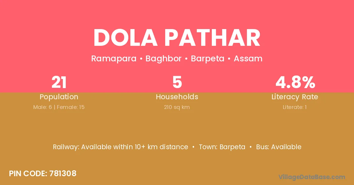 Dola Pathar village has a total population of 21 people, of which 6 are males and 15 are females.