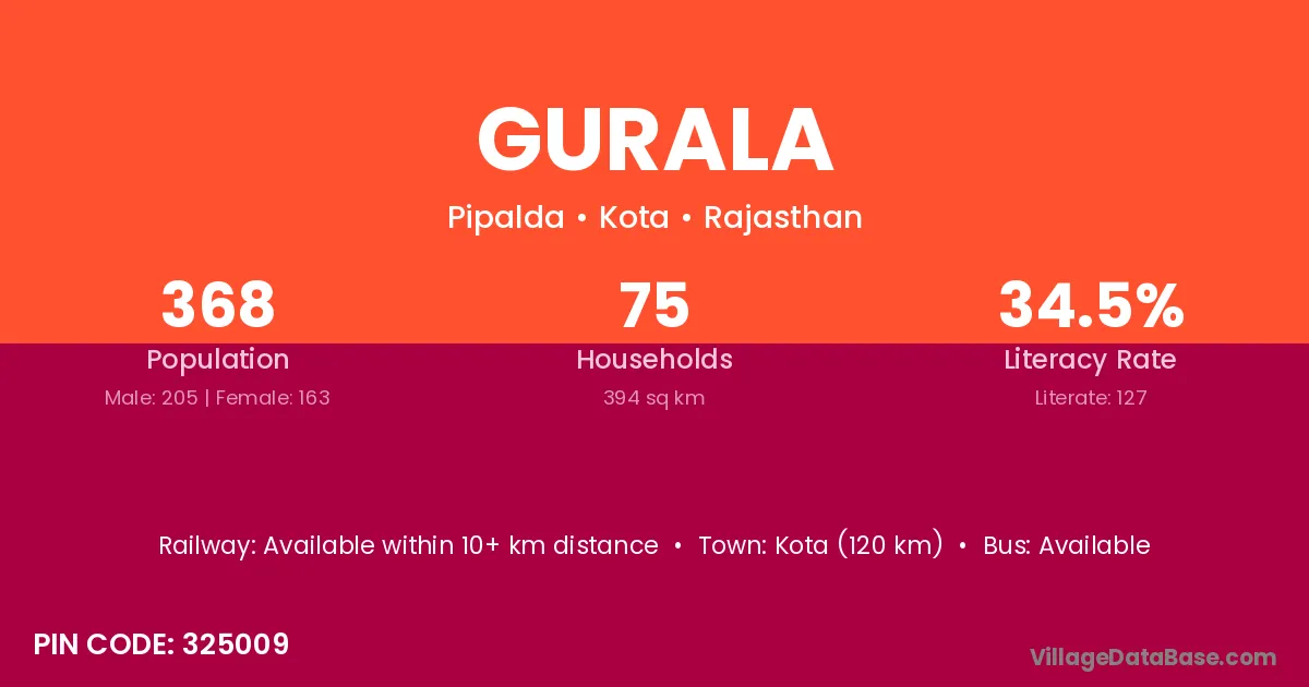 The literacy rate of Gurala village is 36.02%. Male literacy stands at 43.77% and female literacy at 28.38%.