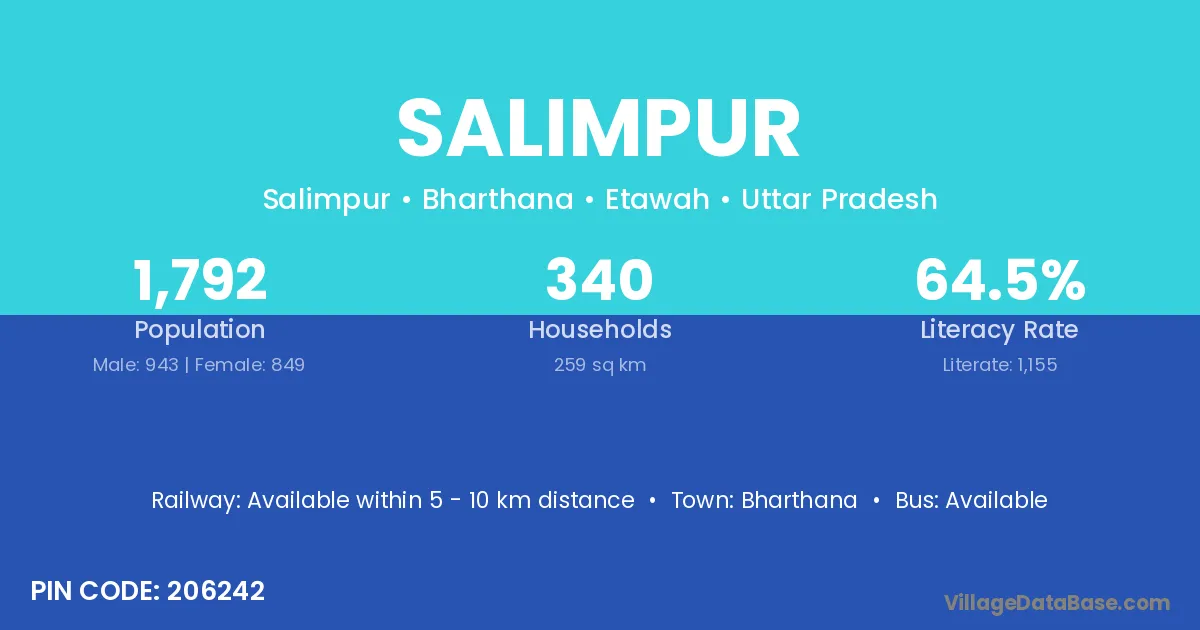 The literacy rate of Salimpur village is 37.11%. Male literacy stands at 40.68% and female literacy at 33.48%.