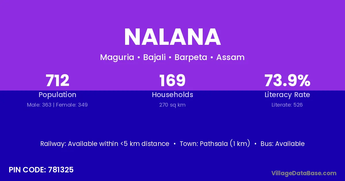 Pathsala (1 km) is the nearest town to Nalana village for major economic activities and is located approximately 1 km away.